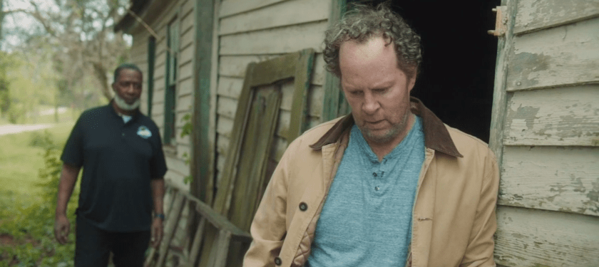 But as tropes go, if there’s a better way to start a dark backwoods tale of money, family and murder than the sight of a 40something loner, gone-to-seed, digging a hole by lantern light as he narrates-drawls “I don’t know where to begin, really,” I haven’t run across it.