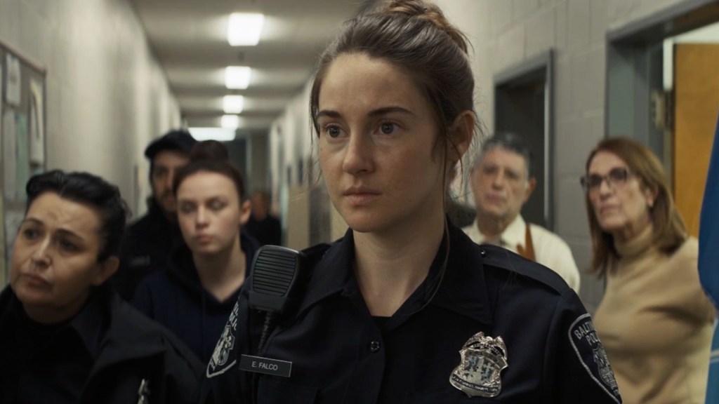 Shailene Woodley plays Eleanor Falco, a 30ish cop whose New Year’s Eve unruly diner call is interrupted by random murders all over central Baltimore. One of the film’s more chilling sequences is the single shot sniper shootings in a hot tub party, a glass elevator, through windows and picking off people at an outdoor skating rink.