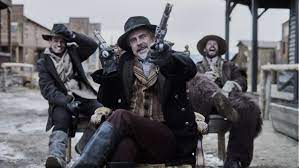 A Black farmer (Clé Bennett) leaves his pregnant wife (Jessica Francis Duke) to get mixed-up in this affair. Thomas Lennon plays a barkeep at a candlelit saloon (another gorgeous image), a character whose dramatic purpose is less impressive than his name — Royal Fitzgibbon