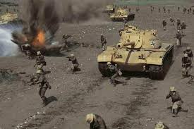 For a war movie, there are a maybe half a dozen combat scenes, most quite brief. But director Franklin Schaffner (“Planet of the Apes,” “Papillon,” “Islands in the Stream,” “The Boys from Brazil”) limited himself to one big desert set-piece battle, filled with real tanks, real bombers and fighters sweeping in low and a sea of extras dodging faked explosions under a sky littered with pyrotechnics department air bursts.