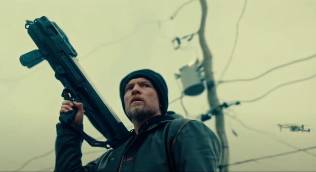 Sam Worthington plays Kessler, an AI Code Enforement officer who tracks down “unregulated” simulants, wherever they may be. He’s got a pistol-shaped scanner to determine proof-of-life or “robot.” And when this one attractive quarry (Sanz, of “The Devil Below” and TV’s “El Cid” and “Now and Then”) knocks him around with superhuman ease, and then sprints off, he whips out his electro-magnetic pulse (EMP) rifle to disable every simulant within range so he can catch and detain her.