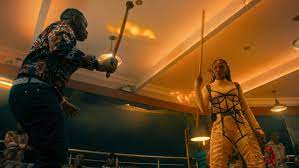 Our Black cop team here is consists of gonzo undercover idealist Chili (S’Dumo Mtshali) who is in his element, all pimped-out in wig (complete with an Afro-pick pistol), garish suit and vintage Dodge Monaco convertible, and his trigger-shy family man partner, Lt. Shoes (Presley Chweneyagae).