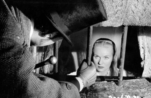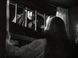 But being a headstrong (not really) lass, Madeleine Smith fancies this rakish, mustachio’d Frenchman. L’Angelier (Ivan Desny, preening and controlling) sees her after the rest of the family has gone to bed. We don’t know how they met, only that he swept her off her feet. A dandy with a cane that he rattles across the bars of her basement window, he is a wage worker who dresses well with an idea of marrying well.