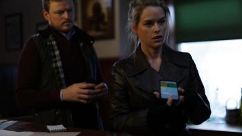 As the earlier victims of the nut-with-a-knife have been the super-secretive Old Money in the county, protected by snarling solicitor Victor Harrison (Matthew Tompkins), it’s quite jarring to see this green gumshoe accepted as “authority” when she starts flashing ID and asking uncomfortable questions.