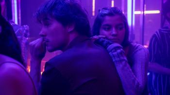 To catch us up, Raquel (Clara Galle) is no longer joined-at-the-groin with her rich neighbor, Ares Hidalgo (Julio Peña), an entitled med student (in school in Stockholm in the second film) who steals Raquel’s wifi every time he comes home to Barcelona to his family of pretentiously-named siblings, younger Apolo (Hugo Arbues) and older Artemis (Eric Masip), now in the family business.