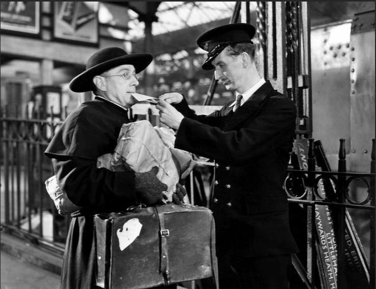 Father Brown, wearing spectacles and wide-eyed with curiosity, must consider every fellow passenger, even ones from the sea of clergy making this pilgrimage with him, a suspect. See how he trips up James Bond’s future boss (Bernard Lee), a jolly chap who passes himself off as a Jaguar salesman.