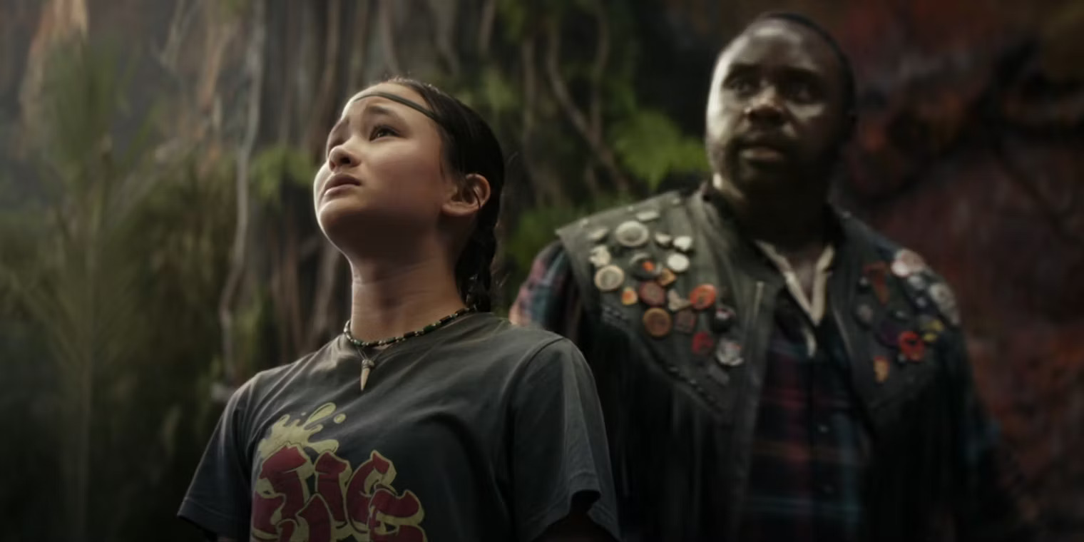 “You can’t be serious,” might be the funniest line among many uttered by the scientist turned single-mom (she adopted the deaf Hollow Earth tribal child Jia — Kaylee Hottle), the conspiracy buff podcaster (Henry) and the surfer dude/kaiju expert and dentist.