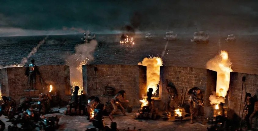 The swordfights are almost as furious as in the first film, just fewer in number. Her the emphasis is on set pieces, sweeping scenes of a city beseiged, a fleet engaged with a heroic artilleryman of noble birth, “Hannibal to my friends” (Ralph Amoussou) bringing a little diversity to this oft-told-tale.
