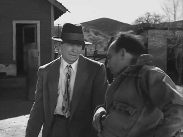 Frank DeKova plays Harry, a “big game hunter” accomplice who keeps a menagerie of dangerous critters at his gas station, including a mountain lion he’s trapped. The comic Morey Amsterdam, later to gain fame via “The Dick Van Dyke Show,” is the treacherous weasel Fandango, aka “Fanny,” a weakling Kelly pushes around, tortures and costs an arm.