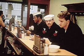 But as Buddusky’s efforts to give this boy a taste of the world before he’s locked out of it for eight years extend to threatening a D.C. barman reluctant to serve Mulhall who will flatly NOT serve an underage sailor, and finding Meadows “a woman,” Mulhall recognizes the threat to both their careers, long time service be damned.