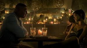 Tattoo’d man-mountain Bautista plays Joe Flood, the best professional assassin in Europe, even though the tats don’t make him the most debonair Double-O wannabe in a tux.