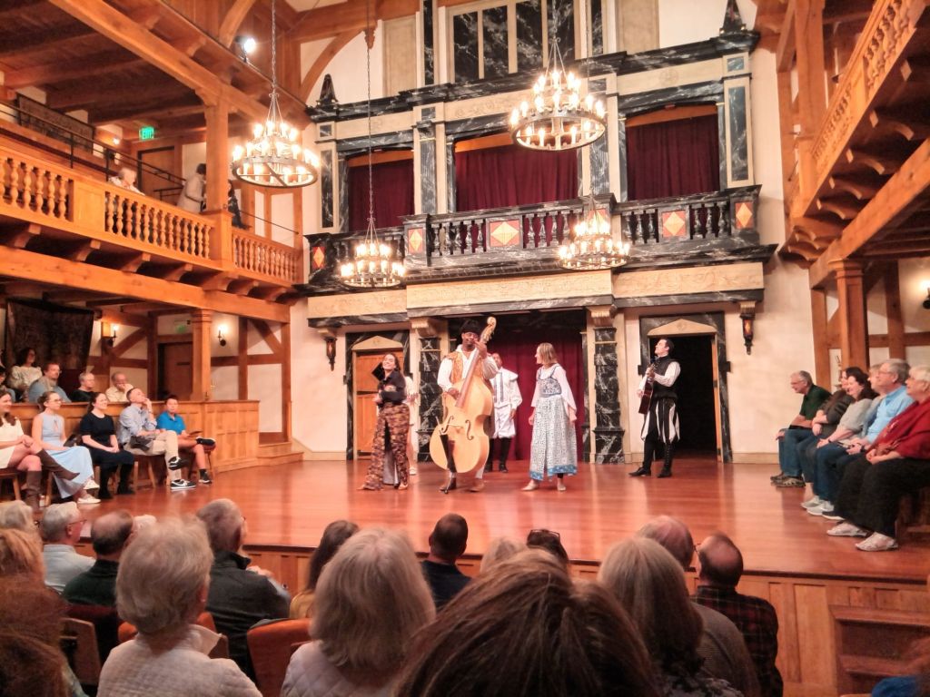 Intermission at a grand vamp of “Merry Wives of Windsor.” Cast of eight in many guises, just killing it.