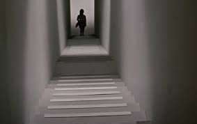 Kawashima shows characters ascending or descending a shadowy symbolic white staircase, up towards their dream life, or down into debt, jail or hell.
