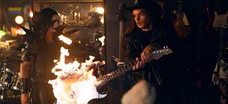 But hardcase head guard Dokken (Helén Vikstvedt) won’t let lead singer Turo (Johannes Holopainen), Dave-Mustaine-worshipping guitarist Lotvonen (Samuli Jaskio), easily-triggered drummer Oula (Chike Ohanwe) and metal purist/KISS cosplaying bassist Xytrax (Max Ovaska) play their “symphonic apocalyptic reindeer-grinding, Christ-abusing, extreme war pagan Fennoscandic metal” behind bars.