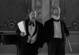 But what we remember about it is the magic of the two greatest silent film comedians, Chaplin and Buster Keaton, sharing a few scenes late in the film, recreating a little of the earlier slapstick and mimed magic from their days treading the boards, living out of a trunk before the movies and Hollywood lured them West.