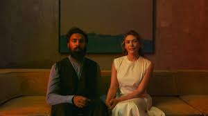 Elizabeth Olsen and Himesh Patel play Mia and Aaryan, a couple of high-value scientists living in a roomy, efficient, AI-equipped mansion on a remote rocky beach. She’s a plant biologist, studying and tinkering with everything from algae on up the evolutionary ladder, looking for future food sources. He’s a virtual reality engineer, perfecting the simulated behavior and tactile texture of a VR cat and a chimp.