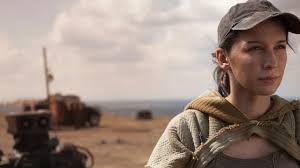 Eva’s solitary existence has her sleeping and working on a “base” consisting of shipping containers, with occasional gas-masked foraging in the nearby town, versions of which we’ve seen in decades of post-apocalyptic thrillers, from “The Omega Man” to “Zombieland” and beyond.
