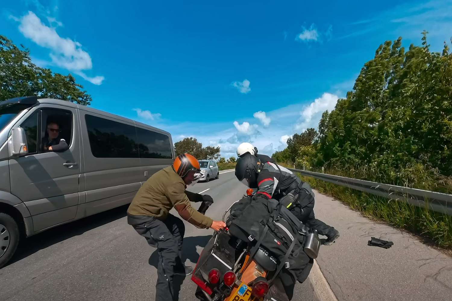 But a few bent frame parts is how they get help from Malmo, Sweden’s “Odd Luck Garage” bikers’ club. Checking out Scandinavian seaweed cuisine is how they meet a couple of traveling musicians busking and gigging around Europe, with McGregor breaking out the ukulele for a little song himself.