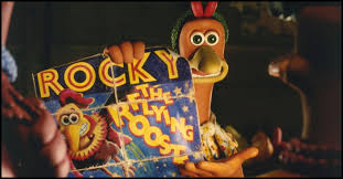 Rocky, the “lone Free Ranger,” is hip, cool, a hustler escaped from a circus and all about entertaining the hens as he leads them through pointless flying lessons, calisthenics and the like.