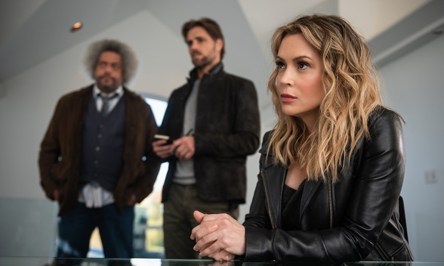 Brazen. (L-R) Malachi Weir as Ben, Alyssa Milano as Grace, Sam Page as Ed in Brazen. Cr. Sergei Bachlakov/Netflix © 2021