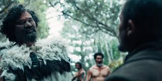 But the more obvious reference is revealed in make-up that accentuates Cage’s plastic surgery fillers over the years. Apply enough pancake and he looks like the marionette Jigsaw “spoke” through in the “Saw” franchise. A little lipstick, a bit of rouge, and the impersonation is complete.