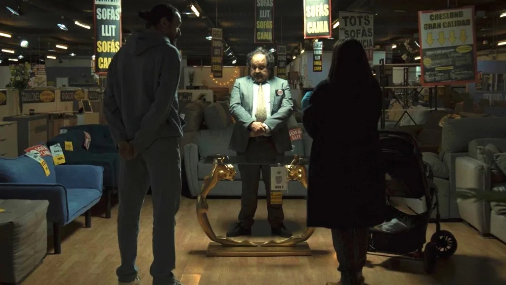 The kid, Manuel, lives with his aged, addled father (Toni Servillo) whose gangland name — “Daytona” — he drops as he scampers about, trying to find “help” to save his skin and get him out of this jam. He turns to the blind mobster (Valerio Mastandrea) nickamed Polniuman. And Polniuman (say it aloud) sends Manuel to bald, scowling “I can’t help you” badman “Romeo,” played with a largely internalized menace by Pierfrancesco Favino.