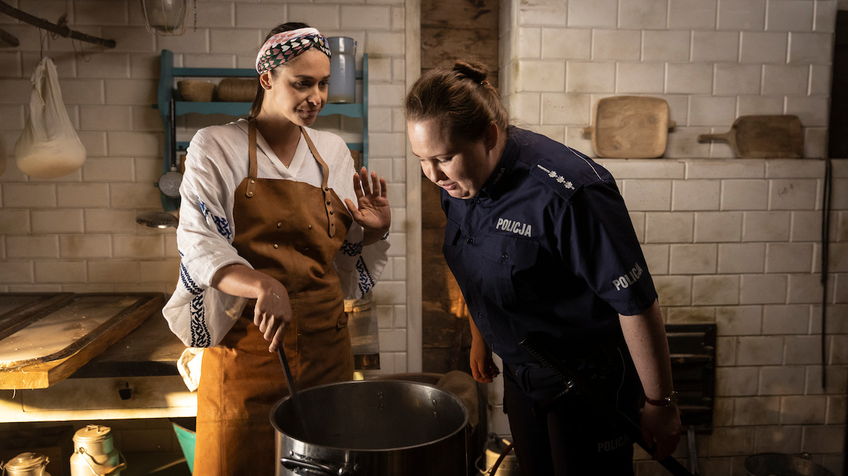 After all, this is a busy time back at the restaurant, which is just about to expand. It was a hassle getting to “the literal middle of nowhere,” and part of that hassle was with this redhead (Mateusz Janicki) who blocked the one-lane bridge Oliwa was trying to cross, and who helps out on the farm. Supposedly this is Wojtek and not the herb grower Kuba who, with his father, are trying to get their hands on the farm and put Halina out of business.