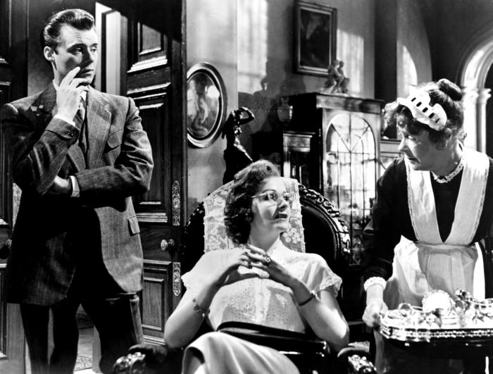Her “simple” housekeeper, Emmie (Kathleen Harrison) backs up Teddy’s tale. And her reward is him tricking her out of her inheritance from Moni, convincing her to continue working for free.