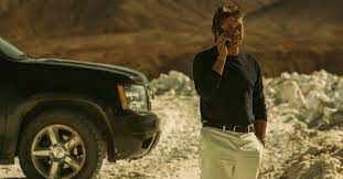 For his latest, he’s hit the gym, mastered a faint drawl and studied that confused, punch-drunk look of a veteran fighter whose memory and very consciousness comes and goes as he staggers towards 50. Stoop-shouldered, he leans so far into his gait that it’s like he’s stalking a foe, or about to fall down in the process. It’s a lovely, lived-in performance.