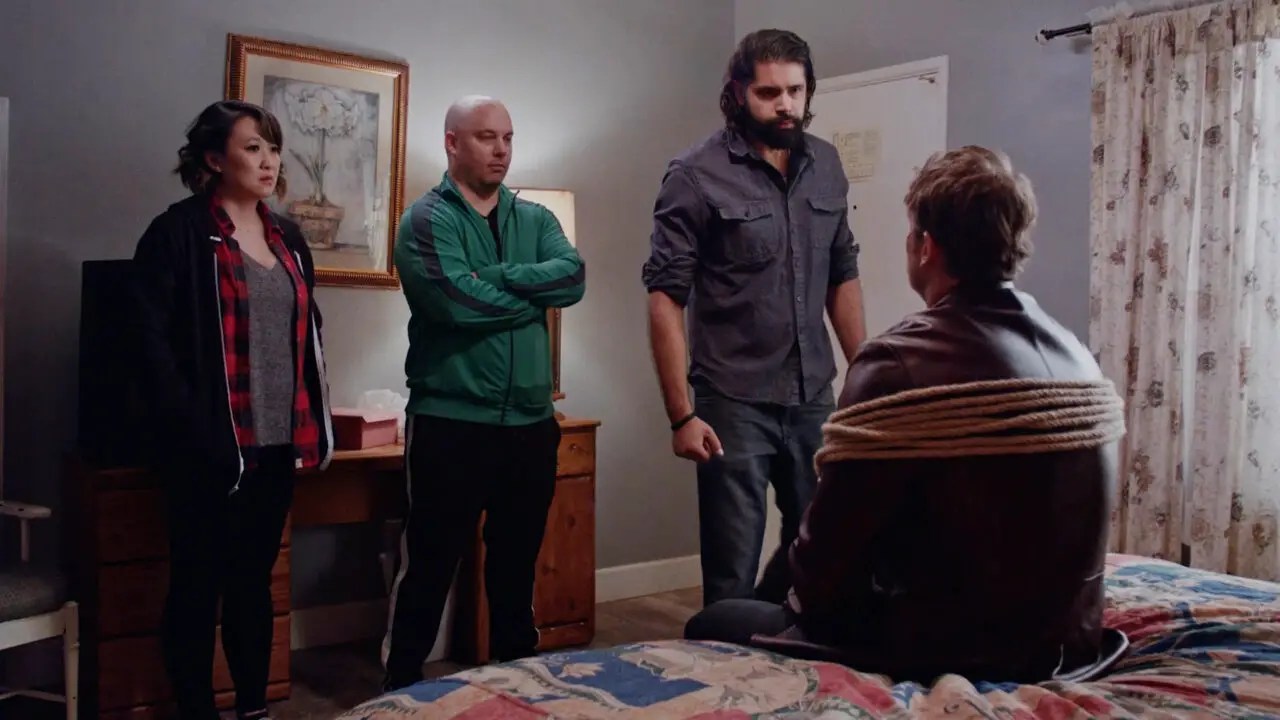 A zealous FBI agent and single mom Deena (Sinda Nichols) who runs a “We catch pedophiles” task force lures a tech nerd with CGI skills into an interrogation. Gareth, played by writer-director Ritch, is a deer-in-headlights for this impromptu interrogation. Deena and her colleague (David Girard) wonder if secretive Gareth is some sort of online predator, or if he’s that “vigilante.”