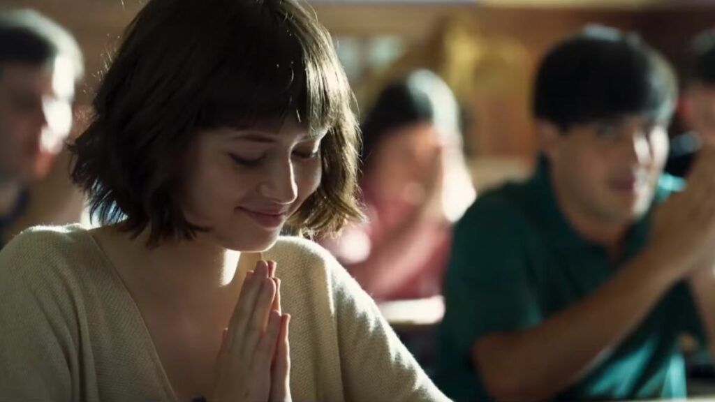 Because that’s necessary. Because even the action beats are muted. Nobody raises her or his voice. And that flat, just-above-a-whisper monotone that was star Hayley Law’s choice of “How to Noir” just smothers the movie.