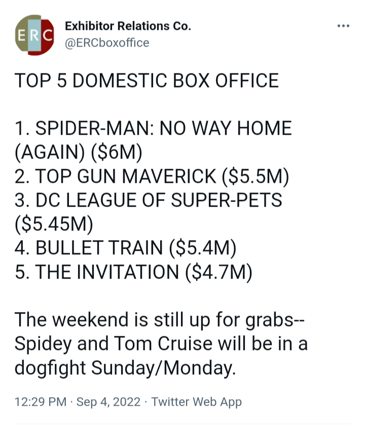 Putting “Spider Man: No Way Home” proved to be a minor boon to cinemas. Very minor. It may win Labor Day Weekend, but not by much.