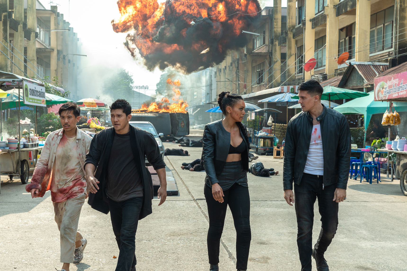 “Last Man Down” is performed English, with characters of various nationalities and actors of different cultures playing them trying to speak it and sound American. The accents are thick, which pairs nicely with the acting, which is ham-fisted.
