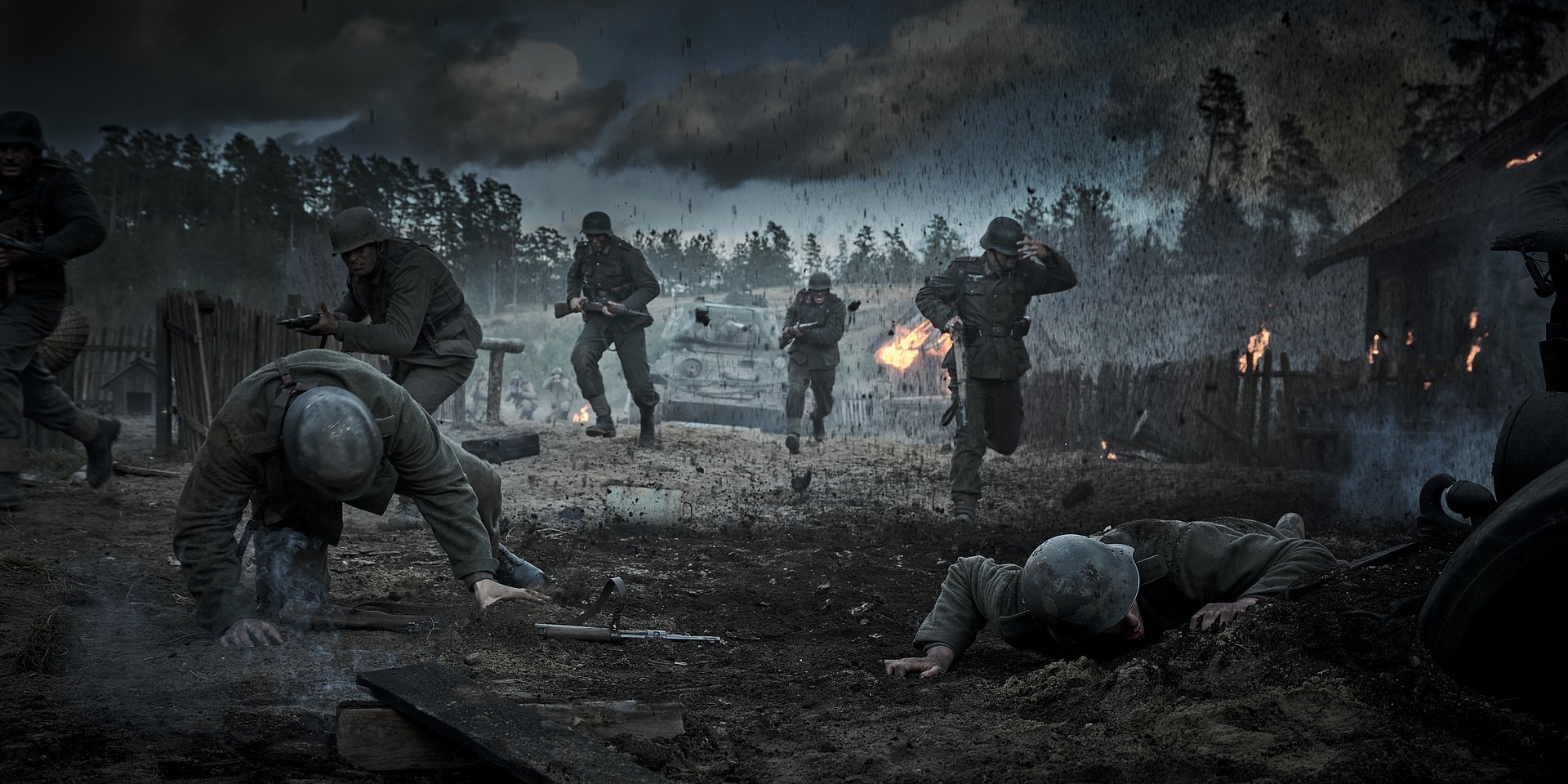 The grey chill of fall hangs over everything as downed fliers wade through flooded fields, soldiers scramble into foxholes and civilians struggle to stay out of everybody with a gun’s way, and fail.