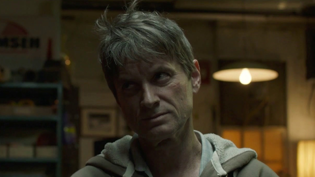 Pollono is Frankie, owner of said “Small Engine Repair” shop, a guy we meet as he gets out of jail, his arm in a cast. It was a short stay for this single dad. Fortunately, he’s got his childhood pals Swaino (Bernthal) and Packie (Whigham) to look after little Crystal.
