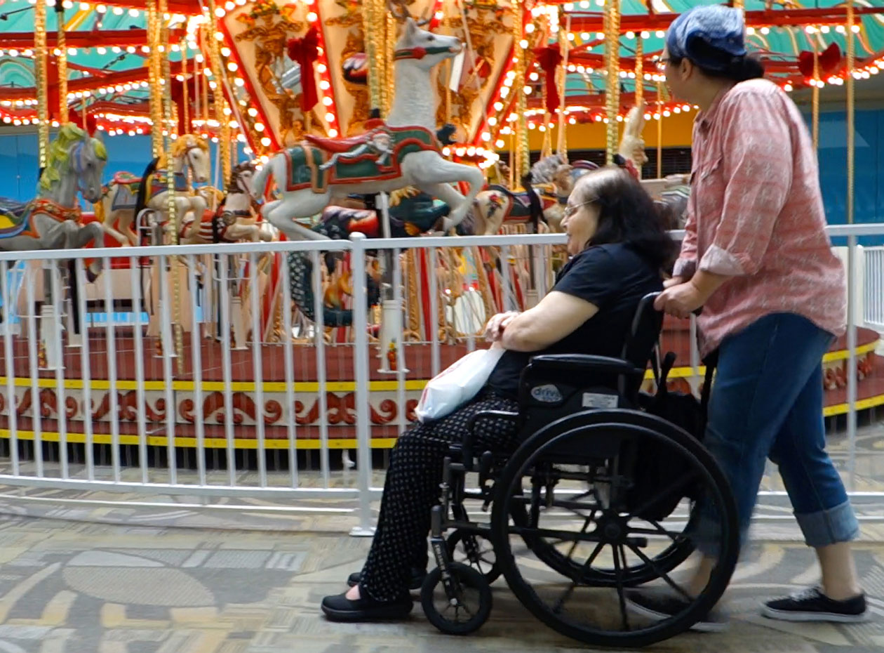It’s a documentary collage of caregiving showcasing the relationships that endure, even if “the roles have reversed” and the parent has become, in essence, the child who needs attention and help with the most basic things in life.