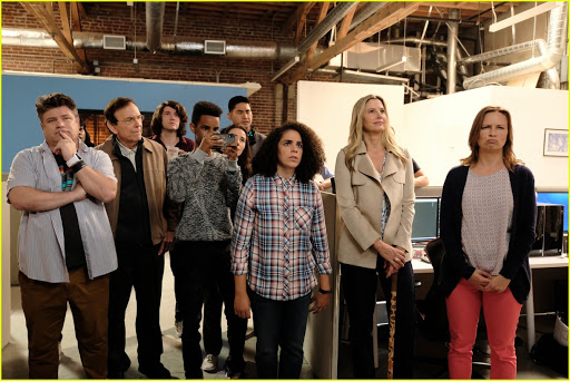There’s a villainous rival company, Xodus, because of course there is, run by the villainous Rick (Nelson Franklin). A cute granddaughter of the accountant (Paige Massara) stops by the show off her bangs and distract poor Troy.