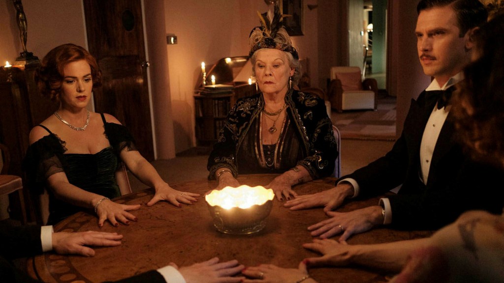 Charles fumbles about for a hook, a way to give his unwritten script an added kick. A night at the theater watching swami, spiritualist and hustler Madame Arcati (Judi Dench) fake-levitate and try to convince the punters that she can “break through to the other side” and talk to the dead might help.