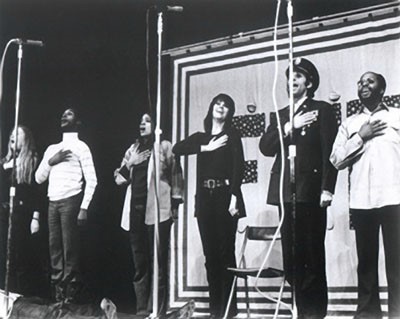 They’d sing songs, perform sketches and poetry and dramatic readings, gathering their material from “GI newspapers around the world.” It was, Fonda said then, “political vaudeville.” It was, she says now, designed “to be the opposite of the ‘pro war’ Bob Hope shows” of the time.