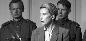 Konchanlovskiy, telling this story in period newsreel black-and-white, has it unfold in brief, unhurried strokes. A committee meeting interrupted by the sounds of a distant civil defense siren, a worried call or two or three, instant buck-passing, kicking decisions up the ladder to Moscow, one and all citing Soviet Truths they take for granted.