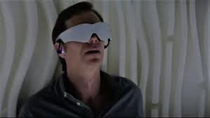 What begins as a gloomy commentary on a world dialed-in and “tuning out” reality, a reality in which atmospheric damage and sunspots have rendered going outside in daylight toxic and the cost of people living “virtually” in human emotional terms, ends in a long, loopy scene that can only be described as clone camp.