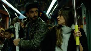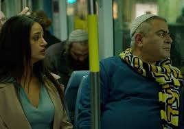 Sure, a yenta (Hana Laslo) nags her 30something son about getting married and giving her grandchildren, joking with and engaging a Yeshiva student and anybody else there in her case. A reporter tries to interview the new European football coach who’s just taken over Beitar Jerusalem and cannot get a word in edgewise as his boorish, cheerleading Israeli assistant breathlessly interrupts and answers for him, the train’s creeper of a security guard (Liron Levo) harasses attractive women, and at the behest of a Jewish Israeli “Karen,” profiles and assaults a Palestinian man who has had the temerity to stand next to her with a bouquet of store-bought flowers.